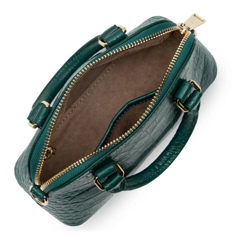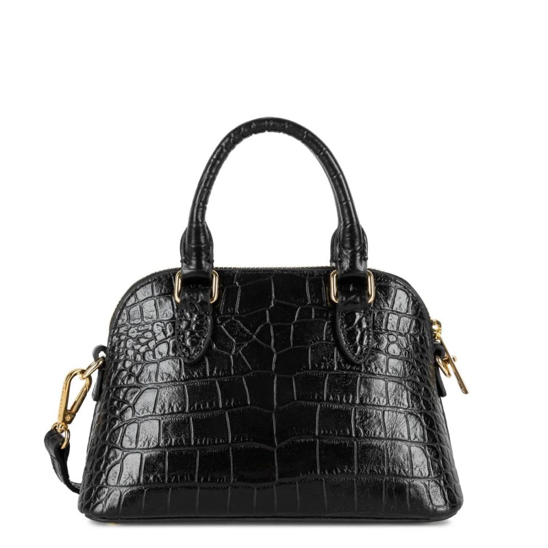 Ce sac à main possède un compartiment principal zippé. Son intérieur est composé de deux poches plaquées et d’une poche zippée, tout pour être bien organisé(e). Grâce à sa bandoulière amovible, il peut également se porter de travers. Les finitions sont en métal doré.